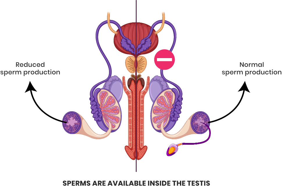 In patients with no block to sperm passage, the production itself is very less, however sperms may be available inside the testis.