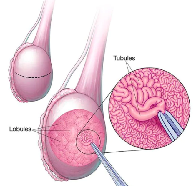 MicroTESE is done by bivalving the testis under the operating microscope (15-20 X) and sperm bearing seminiferous tubules are identified by experience. Once these tubules are identified, they are teased and the embryologist under the light microscope identifies sperms and their quality.